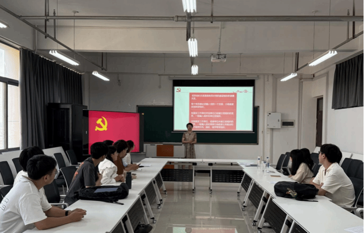 辅导员姜茜讲解了毕业生党员组织关系转接的具体工作,聚焦“党员组织关系是什么、为什么要转接党员组织关系、如何转接党员组织关系以及毕业生党员材料归档方法”等方面做了详细解读,结合往届毕业生党员在转接党组织关系中的常见问题提出具体注意事项,强调按要求完成党组织关系转接工作的严肃性。