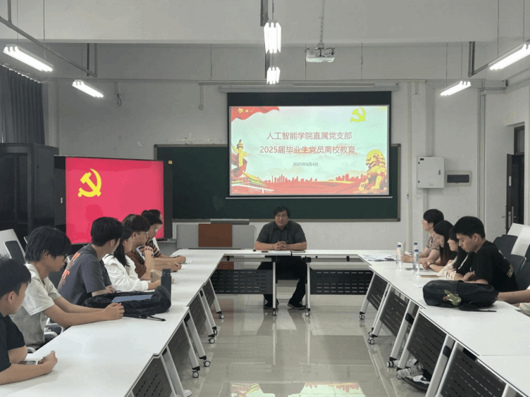 为落实党员教育长效机制,强化“四个意识”,2025年6月4日,db体育在龙湖校区三号组团楼 A907 教室召开 2025届毕业生党员离校教育大会,直属党支部副书记张志鹏、毕业生辅导员及全体毕业生党员参会。