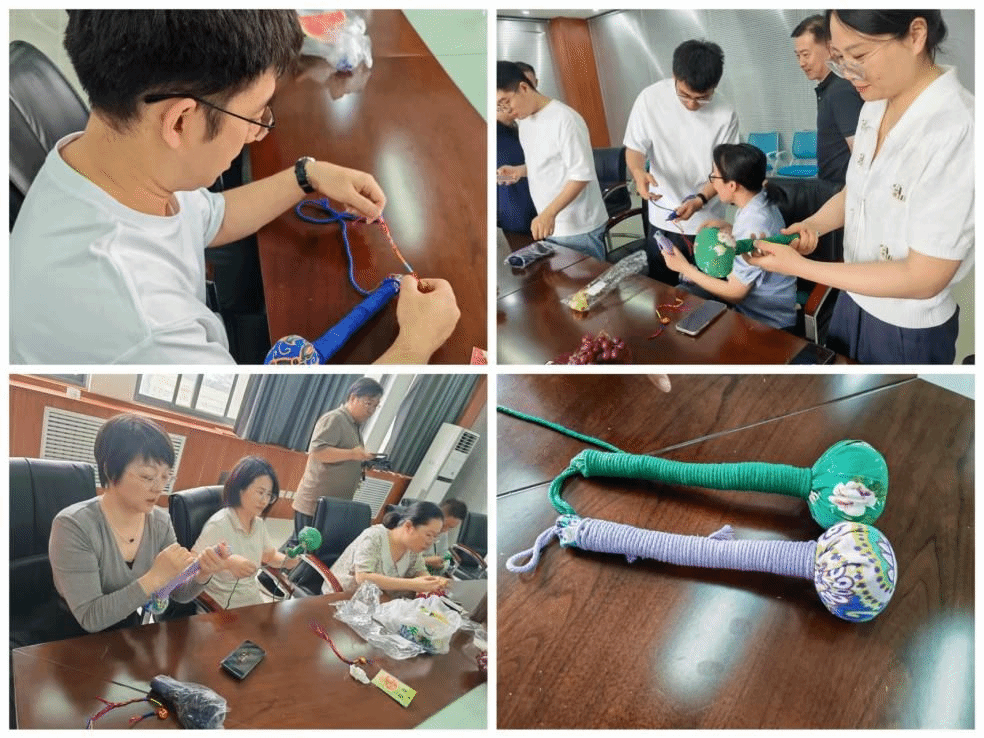 手工制作区内,艾草按摩锤的制作活动格外受欢迎。教师们仔细观看教学视频,随后动手填充艾草、编织绳结,在互帮互助、交流心得的过程中,一个个兼具实用性与纪念意义的手工作品陆续完成。这一环节不仅让大家体验到亲手制作的成就感,也在协作中深化了情感联结,体现出db体育注重人文、贴近生活的团队建设理念。