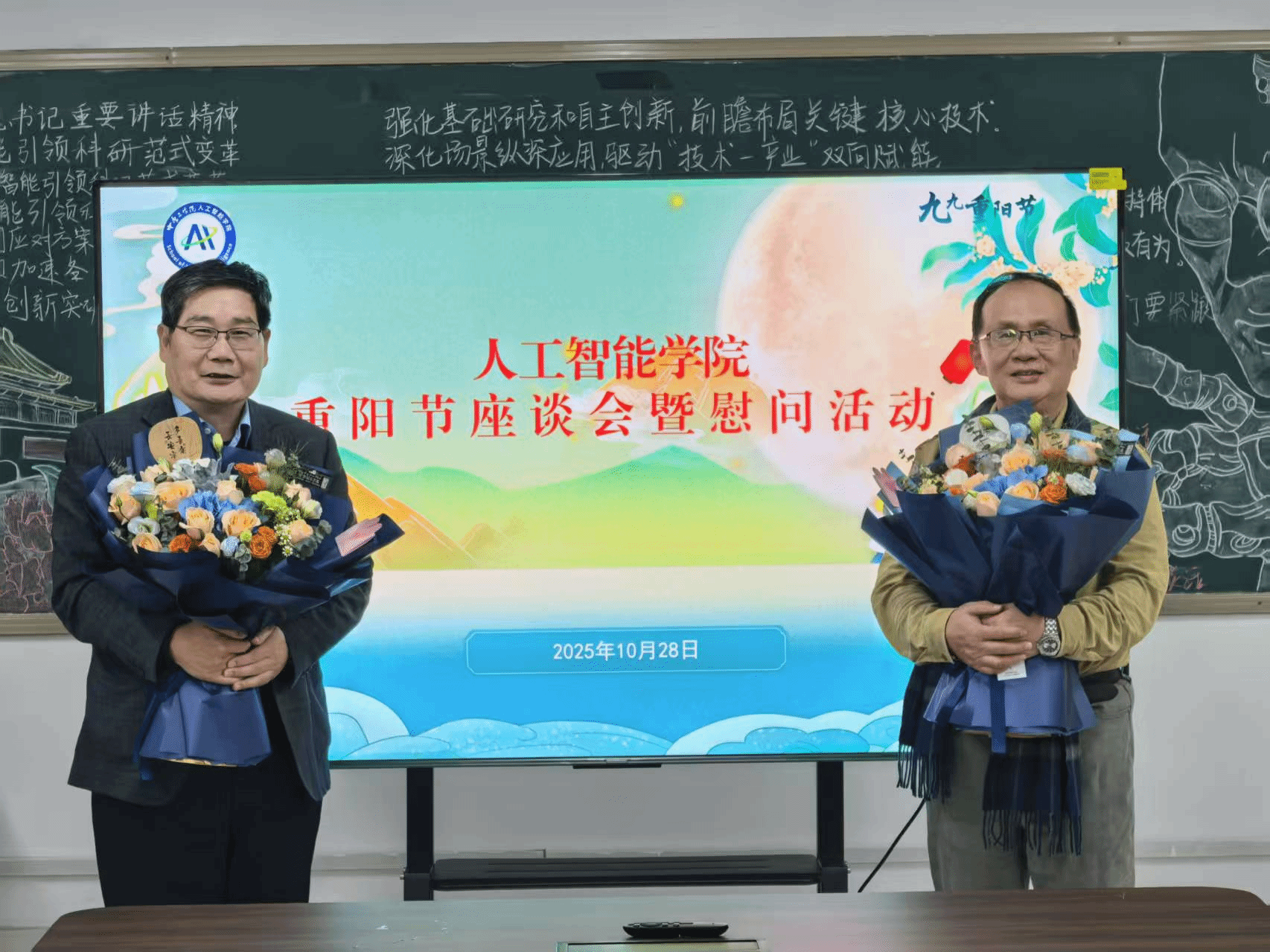 活动最后,公司为陈东义经理和车战斌老师送上了鲜花与纪念品,表达节日的祝福与崇高的敬意。