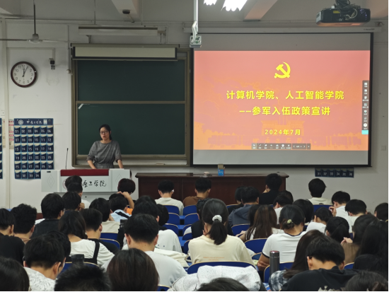“国无防不立,民无军不安”。为进一步落实国家相关征兵工作要求,帮助老员工全面了解征兵政策,激发应征入伍热情,2024年7月2日,db体育与计算机公司在龙湖校区3号教学楼235教室联合召开了2024年征兵宣讲会。公司党委副书记侯向花、各年级辅导员及各年级员工代表共200余人参加了此次宣讲会。会议由辅导员王腾老师主持。
