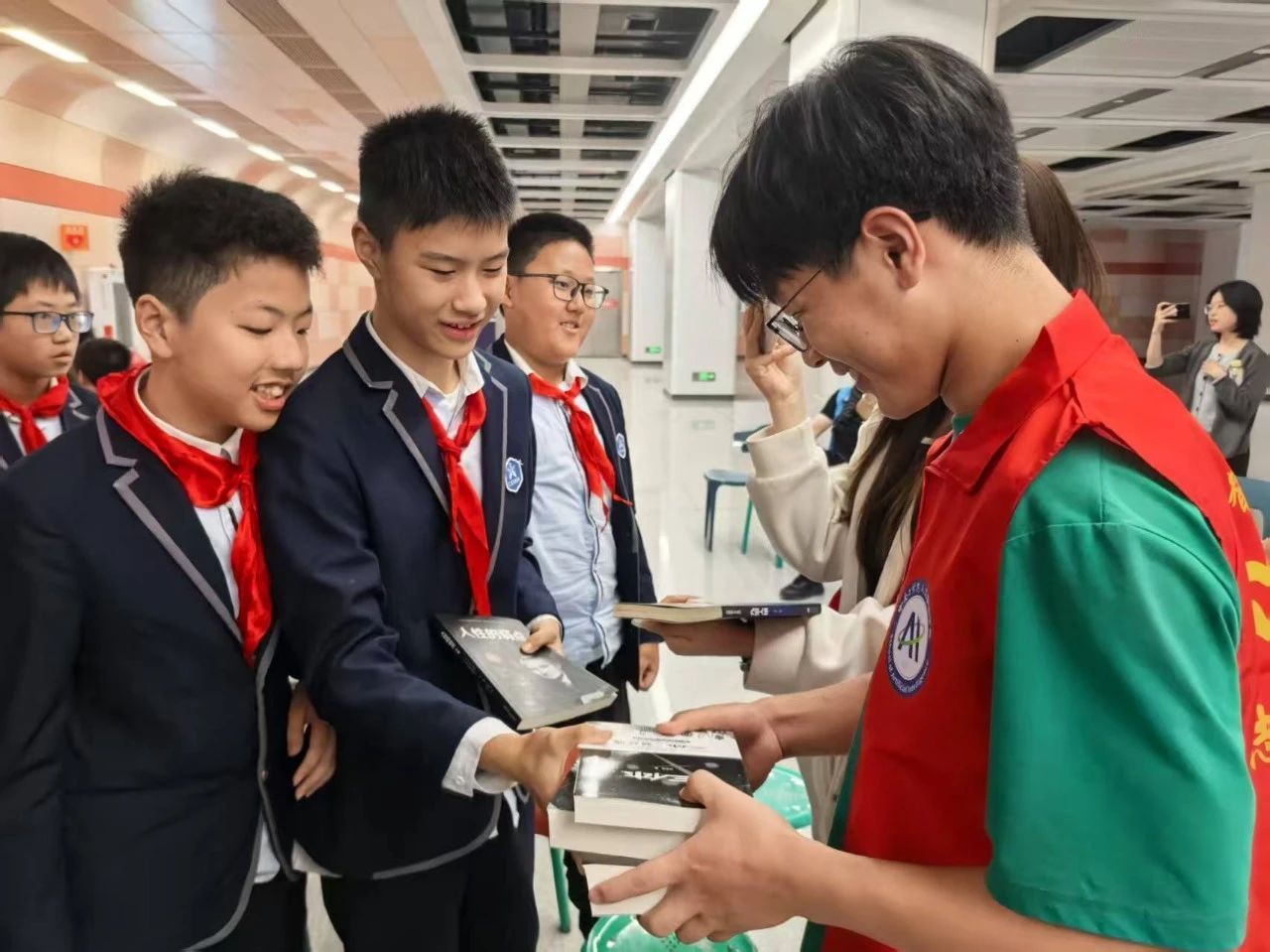 在“旧书新知 以书会友”环节,参与活动的员工与主持人热情互动。大家纷纷拿出自己日常阅读的书籍相互赠送,并认真书写心得便签张贴在封皮上。在交换书籍的过程中,db体育的大朋友们和郑州西斯达城市森林公司的小朋友们不仅交到了志同道合的朋友,还通过便签分享,提前了解了书籍丰富的内容,开启了一场跨越书籍的心灵交流之旅。
