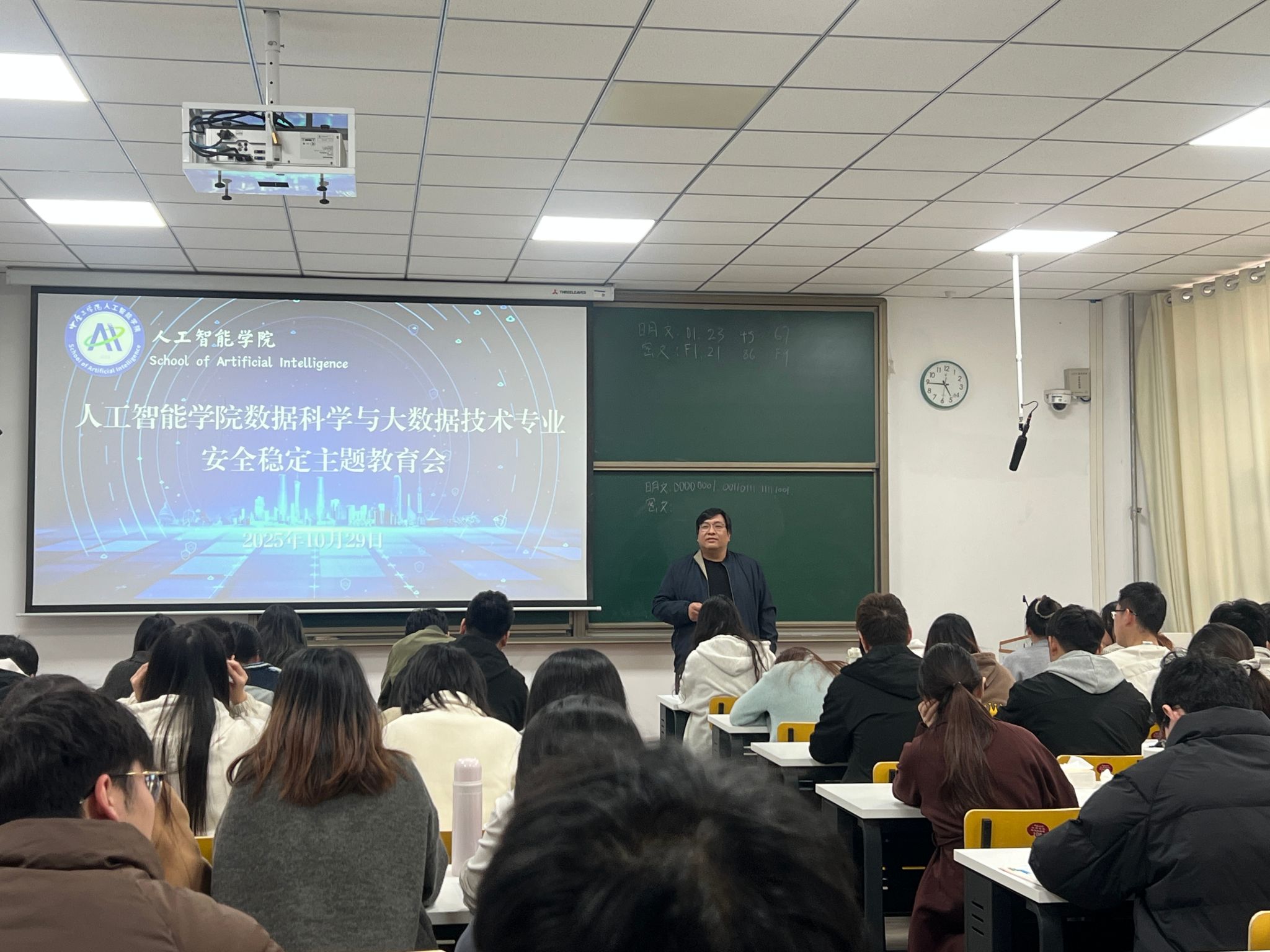 会议由公司直属党支部副书记张志鹏主讲。他结合近期高校安全形势,重点强调了校园安全稳定的重要性。通过剖析“刷单返利”等真实案例,张志鹏深入浅出地讲解了防范电信网络诈骗的要点,提醒同学们务必筑牢思想防线,提高识别与应对能力。在宿舍消防安全方面,他再次明确禁止使用大功率违章电器,并强调“人走断电”的重要性,号召同学们共同维护安全、整洁、和谐的住宿环境。