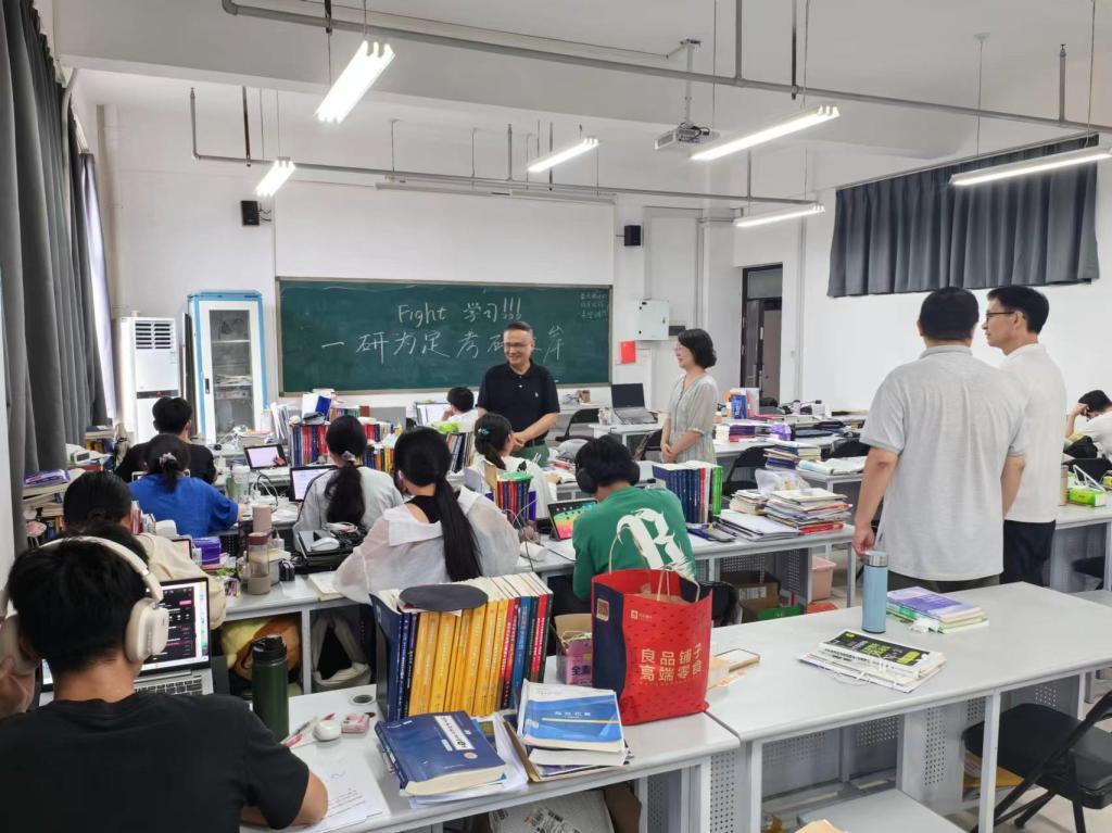 在考研自习教室,老师们看望了正在备战考研的2021级员工。陈东义经理亲切地与同学交谈,了解报考意愿和复习进度,鼓励大家坚定信心、脚踏实地、坚持不懈、实现梦想;同时叮嘱同学们注意用电安全,合理规划时间、劳逸结合,保持身心健康。